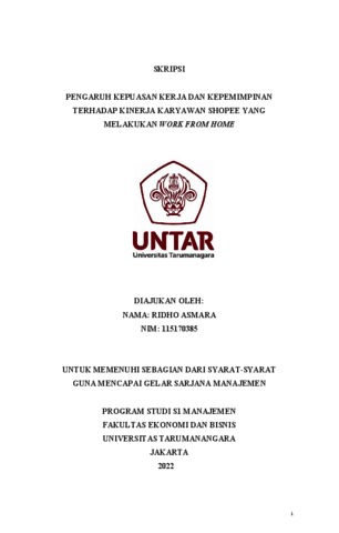 ASMARA, RIDHO (2022) PENGARUH KEPUASAN KERJA DAN KEPEMIMPINAN TERHADAP KINERJA KARYAWAN SHOPEE YANG MELAKUKAN WORK FROM HOME. Skripsi thesis, Universitas Tarumanagara.