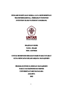 Rivaldi, Rivaldi (2022) PENGARUH KEPUASAN KERJA, GAYA KEPEMIMPINAN TRANSFORMASIONAL, TERHADAP TURNOVER INTENTION ELOK WATER DI TANGERANG. Skripsi thesis, Universitas Tarumanagara.
