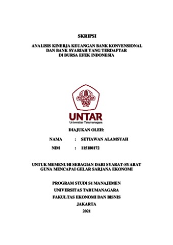 ALAMSYAH, SETIAWAN (2022) ANALISIS KINERJA KEUANGAN BANK KONVENSIONAL DAN BANK SYARIAH YANG TERDAFTAR DI BURSA EFEK INDONESIA. Skripsi thesis, Universitas Tarumanagara.