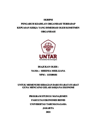 MEILLIANA, SHEENIA (2022) PENGARUH KEADILAN ORGANISASI TERHADAP KEPUASAN KERJA YANG DIMEDIASI OLEH KOMITMEN ORGANISASI. Skripsi thesis, Universitas Tarumanagara.