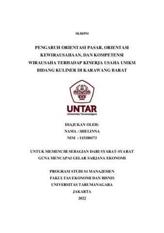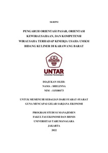 SHELINNA, SHELINNA (2022) PENGARUH ORIENTASI PASAR, ORIENTASI KEWIRAUSAHAAN, DAN KOMPETENSI WIRAUSAHA TERHADAP KINERJA USAHA UMKM BIDANG KULINER DI KARAWANG BARAT. Skripsi thesis, Universitas Tarumanagara.