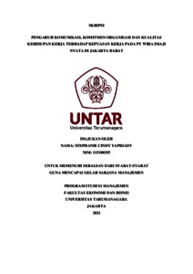 YAPRIADY, STEPHANIE CINDY (2022) PENGARUH KOMUNIKASI, KOMITMEN ORGANISASI DAN KUALITAS KEHIDUPAN KERJA TERHADAP KEPUASAN KERJA PADA PT WIRA IMAJI NYATA DI JAKARTA BARAT. Skripsi thesis, Universitas Tarumanagara.