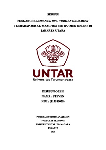 STEVEN, STEVEN (2022) PENGARUH COMPENSATION, WORK ENVIRONMENT TERHADAP JOB SATISFACTION MITRA OJEK ONLINE DI JAKARTA UTARA. Skripsi thesis, Universitas Tarumanagara.