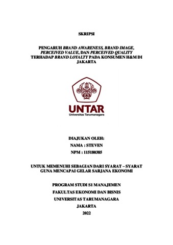 STEVEN, STEVEN (2022) PENGARUH BRAND AWARENESS, BRAND IMAGE, PERCEIVED VALUE, DAN PERCEIVED QUALITY TERHADAP BRAND LOYALTY PADA KONSUMEN H&M DI JAKARTA. Skripsi thesis, Universitas Tarumanagara.