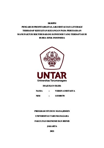 Kata kunci: Profitabilitas, Likuiditas, Leverage, Financial Distress