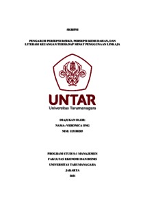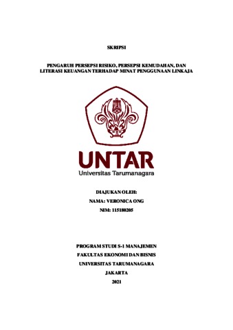 ONG, VERONICA (2022) PENGARUH PERSEPSI RISIKO, PERSEPSI KEMUDAHAN, DAN LITERASI KEUANGAN TERHADAP MINAT PENGGUNAAN LINKAJA. Skripsi thesis, Universitas Tarumanagara.