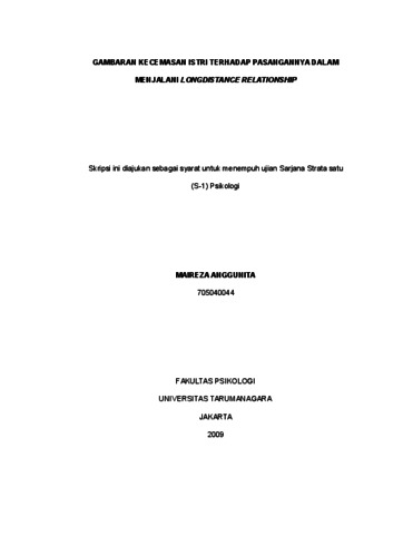 Anggunita, Maireza (2022) Gambaran kecemasan istri pada pasangannya dalam menjalani longdistance relationship. Skripsi thesis, Universitas Tarumanagara.