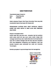 Sari, Puspa Ratna (2022) Perancangan ilustrasi buku hidup antigalau: menata karier dan masa depan di umur 20-an bagi emerging adulthood (DKV - 2748). Skripsi thesis, Universitas Tarumanagara.