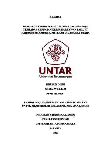 WILLIAM, WILLIAM (2022) PENGARUH KOMPENSASI DAN LINGKUNGAN KERJA TERHADAP KEPUASAN KERJA KARYAWAN PADA PT HARMONI MAKMUR SEJAHTERAH DI JAKARTA UTARA. Skripsi thesis, Universitas Tarumanagara.