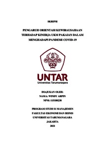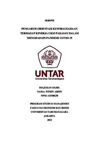 ARPIN, WINDY (2022) PENGARUH ORIENTASI KEWIRAUSAHAAN TERHADAP KINERJA UKM PAKAIAN DALAM MENGHADAPI PANDEMI COVID-19. Skripsi thesis, Universitas Tarumanagara.