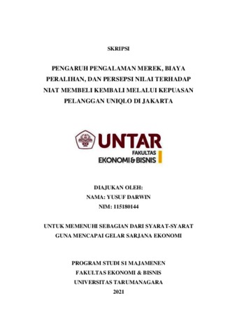 DARWIN, YUSUF (2022) PENGARUH PENGALAMAN MEREK, BIAYA PERALIHAN, DAN PERSEPSI NILAI TERHADAP NIAT MEMBELI KEMBALI MELALUI KEPUASAN PELANGGAN UNIQLO DI JAKARTA. Skripsi thesis, Universitas Tarumanagara.