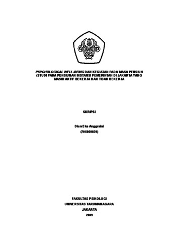 Anggraini, Dian Eka (2022) Psychological well-being dan Kegiatan pada Masa Pensiun (Studi pada Pensiunan Instansi Pemerintah di Jakarta yang Masih Aktif Bekerja dan Tidak Bekerja. Skripsi thesis, Universitas Tarumanagara.