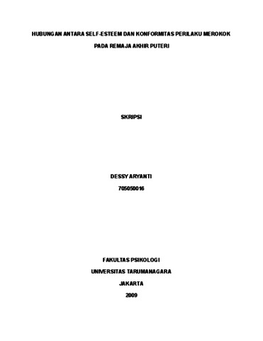 Aryanti, Dessy (2022) Hubungan antara Self-esteem dan Konformitas Perilaku Merokok pada Remaja Akhir Puteri. Skripsi thesis, Universitas Tarumanagara.