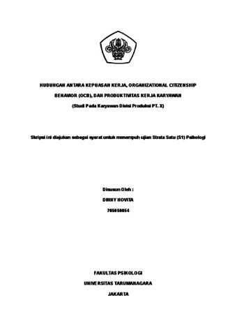 Novita, Dinny (2022) Hubungan antara kepuasan kerja, organizational citizenship behavior, dan produktivitas kerja. Skripsi thesis, Universitas Tarumanagara.