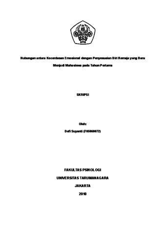 Suyanti, Defi (2022) Hubungan antara Kecerdasan Emosional dengan Penyesuaian Diri Remaja yang Baru Menjadi Mahasiswa pada Tahun Pertama. Skripsi thesis, Universitas Tarumanagara.