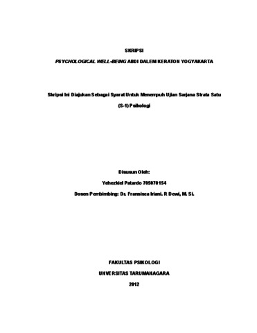 Patardo, Yehezkiel (2022) Psychological Well-being Abdi Dalem Keraton Yogyakarta. Skripsi thesis, Universitas Tarumanagara.