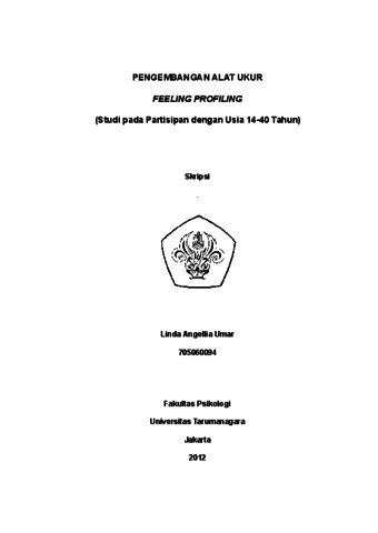 Umar, Linda Angellia (2022) Pengembangan Alat Ukur Feeling Profiling (Studi pada Partisipan dengan Usia 14-40 Tahun). Skripsi thesis, Universitas Tarumanagara.