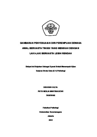 Dewi, Putu Meilia Martina (2022) Gambaran Penyesuaian Diri Perempuan Dewasa Awal Berkasta Tinggi yang Menikah dengan Pria Berkasta Lebih Rendah. Skripsi thesis, Universitas Tarumanagara.