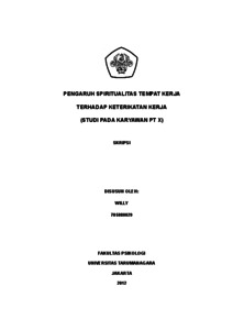 Willy, Willy (2022) Pengaruh Spiritualitas Tempat Kerja terhadap Keterikatan Kerja (Studi pada Karyawan PT X). Skripsi thesis, Universitas Tarumanagara.
