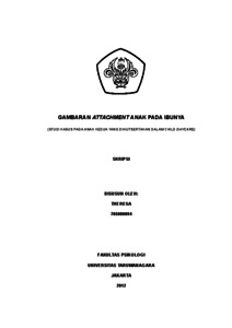 Theresa, Theresa (2022) Gambaran Attachment Anak pada Ibunya (Studi Kasus pada Anak Kedua yang Diikutsertakan dalam Child Daycare). Skripsi thesis, Universitas Tarumanagara.