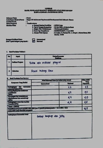 Tadjudin, Noer Saelan Hasil Peer Review HAKI Noer Saelan Tadjudin "Stages Of Adolescent Psychosocial Development Erik Erikson's Theory". -.
