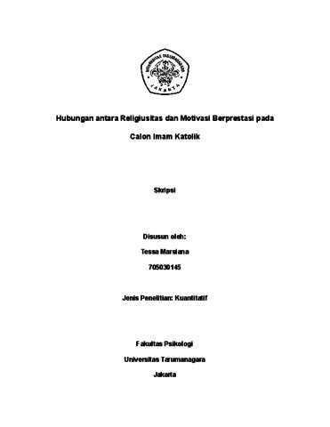 Marsiana, Tessa (2022) Hubungan antara Religiusitas dan Motivasi Beprestasi pada Calon Imam Katolik. Skripsi thesis, Universitas Tarumanagara.