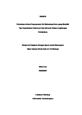 Gan, Silvia (2022) Perbedaan antara Penyesuaian Diri Mahasiswa Baru yang Memiliki Tipe Kepribadian Ekstrovert dan Introvert dalam Lingkungan Perkuliahan. Skripsi thesis, Universitas Tarumanagara.