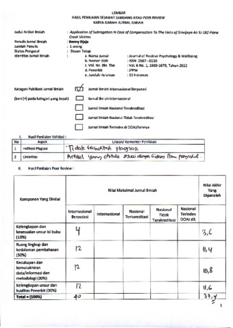 Djaja, Benny (2022) Peer Review : Application of Subrogation In Case of Compensation To The Heirs of Sriwijaya Air SJ-182 Plane Crash victims. Journal of Positive Psychology & Wellbeing, 6 (1). pp. 1669-1679. ISSN 2587-0130