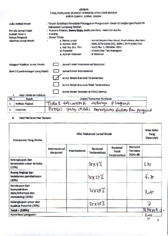 Prianto, Yuwono and Djaja, Benny and Ismelina, Mella and Aprilia, Indah Siti (2021) Peer Review : Telaah Sosiologis Penyebab Pelanggaran Penguasaan Tanah di Lingkungan Pesisir di Kabupaten Lampung Selatan. Jurnal Muara Ilmu Sosial, Humaniora, dan Seni, 5 (2). ISSN 2579-6348