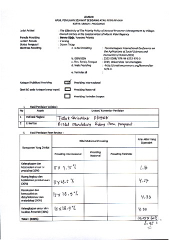 Djaja, Benny and Prianto, Yuwono (2019) Peer Review : The Effectivity of The Priority Policy of Natural Resources Management by Village Owned Entities in The Coastal Areas of Mount Kidul Regency. Tarumanagara International Conference on The Aplications of Social Sciences and Humanities (TICASH). ISSN 2352-5398