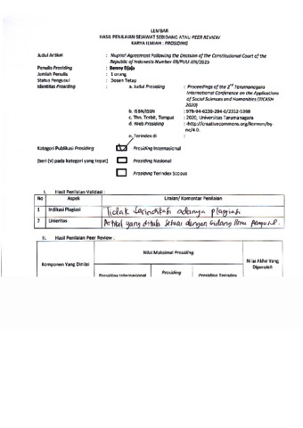 Djaja, Benny (2020) Peer Review : Nuptial Agreement Following the Decision of the Constitutional Court of the Republic of Indonesia Number 69/PUU-XIII/2015. Proceedings of the 2nd Tarumanagara International Conference on the Applications of Social Sciences and Humanities (TICASH 2020). ISSN 2352-5398/978-94-6239-294-6