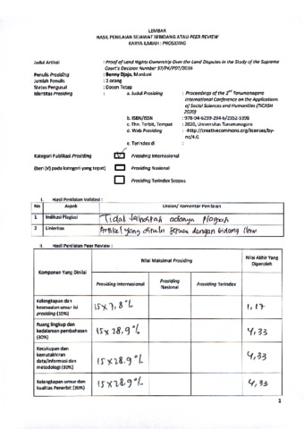 Djaja, Benny and Mardani, Mardani (2020) Peer Review : Proof of Land Rights Ownership Over the Land Disputes in the Study of the Supreme Court's Decision Number 57/PK/PDT/2016. Proceedings of the 2nd Tarumanagara International Conference on the Applications of Social Sciences and Humanities (TICASH 2020). ISSN 2352-5398/978-94-6239-294-6