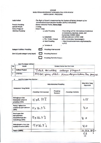 Pratiwi, Retno Indrianita (2021) Peer Review : The Right of Denial in Implementating the Position of Notary (Analysis of the Constitutional Court Decision Number 16/PUU-XVIII/2020). Proceedings of The International Conference on Economics, Business, Social, and Humanities (ICEBSH 2021). ISSN 2352-5398/978-94-6239-423-1