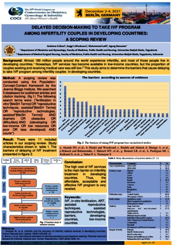 Dewi, Andriana Kumala (2021) URL Dokumen “Delayed Decision-Making To Take IVF Program Among Infertility Couples In Developing Countries: A Scoping Review (Poster)“. In: The 29th World Congress On Controversies in Obstetric, Gynecology & Infertility, 2-4 Desember 2021, 2021, Berlin, Jerman.
