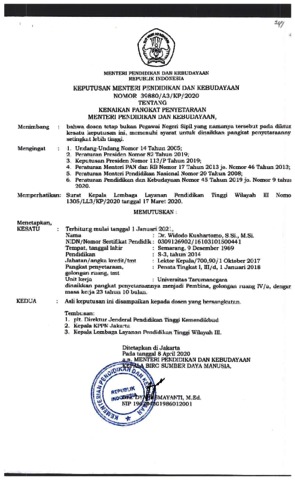 Kushartomo, Widodo Keputusan Mentri Pendidikan dan Kebudayaan. Inpassing Pak Widodo.
