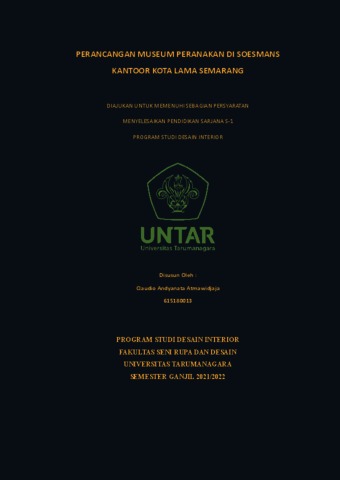 Atmawidjaja, Claudio Andyanata (2022) Perancangan museum peranakan di gedung Soesmans kantor kota lama Semarang (DI - 2318). Skripsi thesis, Universitas Tarumanagara.