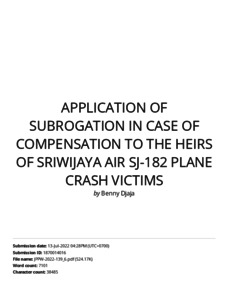 APPLICATION OF SUBROGATION IN CASE OF COMPENSATION TO THE HEIRS OF SRIWIJAYA AIR SJ-182 PLANE CRASH VICTIMS.pdf Download (3MB) | Preview |