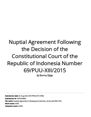 Nuptial Agreement Following the Decision of the Constitutional Court of the Republic of Indonesia Number 69_PUU-XIII_2015.pdf Download (2MB) | Preview |