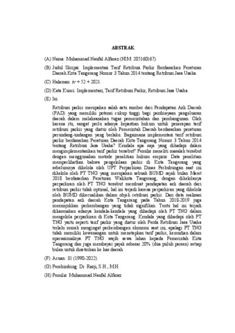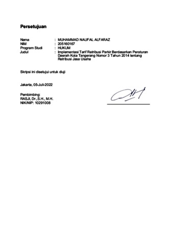 Alfaraz, Muhammad Naufal (2022) Implementasi Tarif Retribusi Parkir Berdasarkan Peraturan Daerah Kota Tangerang Nomor 3 Tahun 2014 tentang Retribusi Jasa Usaha. Skripsi thesis, Universitas Tarumanagara.