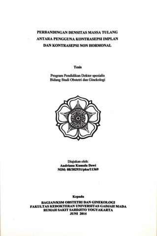 Dewi, Andriana Kumala (2014) Tesis “Perbandingan Densitas Massa Tulang antara Pengguna Kontrasepsi Implan dan Kontrasepsi Non Hormonal”. Skripsi thesis, Universitas Gadjah Mada Jogjakarta.