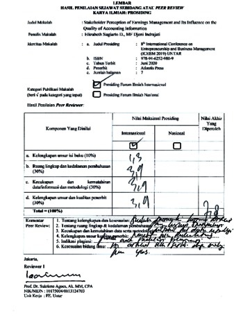 Elizabeth Sugiarto D, Turnitin (2019) Review Stakeholder Perception of Earnings Management and Its Influence on the Quality of Accounting Information. Stakeholder Perception of Earnings Management and Its Influence on the Quality of Accounting Information. ISSN ISSN : 2352-5428 / ISBN : 978-94-6252-980-9