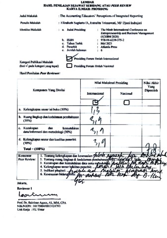 Elizabeth Sugiarto D, Turnitin (2020) Review The Accounting Educators’ Perceptions of Integrated Reporting. UNTAR, Untar.