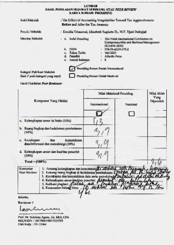 Elizabeth Sugiarto D, Turnitin (2020) Review The Effect of Accounting Irregularities Toward Tax Aggressiveness Before and After the Tax Amnesty. UNTAR, Untar.