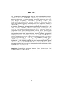 | Uncontrolled Keywords: | Pengendalian Persediaan, Quantity Order, Reorder Point, EOQ Probabilistik, Simulasi Monte Carlo |