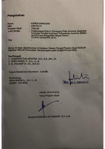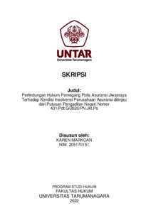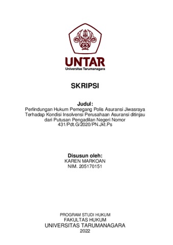 Markoan, Karen (2022) Perlindungan Hukum Pemegang Polis Asuransi Jiwasraya Terhadap Kondisi Insolvensi Perusahaan Asuransi Ditinjau Dari Putusan Pengadilan Negeri Nomor 431/Pdt.G/2020/PN.Jkt.Pst. Skripsi thesis, Universitas Tarumanagara.