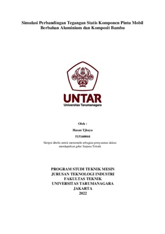 Tjahaya, Hasan (2022) Simulasi perbandingan tegangan statis komponen pintu mobil berbahan aluminium dan komposit bambu (TM - 1319). Skripsi thesis, Universitas Tarumanagara.