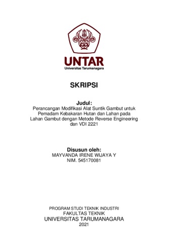 Yakup, Mayvanda Irene Wijaya (2021) Perancangan modifikasi alat suntik gambut untuk pemadam kebakaran hutan dan lahan pada lahan gambut dengan metode reverse engineering dan vdi 2221 (T. Ind - 713). Skripsi thesis, Universitas Tarumanagara.