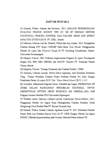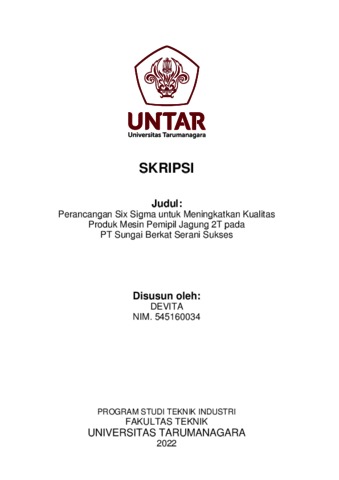 Devita, Devita (2022) Perancangan six sigma untuk meningkatkan kualitas produk mesin pemipil jagung 2t pada PT. Sungai Berkat Serani Sukses (T. Ind - 727). Skripsi thesis, Universitas Tarumanagara.