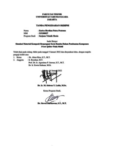 Pratomo, Enrico Herdian Putra (2021) Simulasi material komposit berpenguat serta bambu dalam pembuatan komponen front splitter pada mobil (TM - 1314). Skripsi thesis, Universitas Tarumanagara.