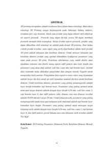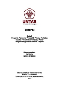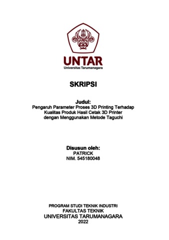 Patrick, Patrick (2022) Pengaruh parameter proses 3d printing terhadap kualitas produk hasil cetak 3d printer dengan menggunakan metode taguci (T. Ind - 706). Skripsi thesis, Universitas Tarumanagara.